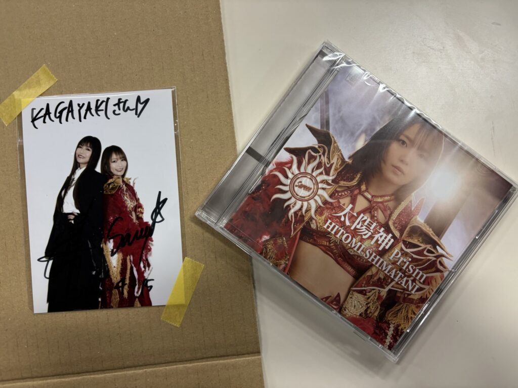 2026/04/18(土) 趣味 / その他 2026.04.182026.04.19 届きました^ ^ 島谷ひとみさん Sareee選手 インターネットサイン会の直筆の寄せ書きサイン CD 太陽神のジャケも最高‼︎ 伊達の「2人は真の太陽神です、応援してます」のコメントに… KAGAYAKIさん、嬉しい、ありがとーって言ってもらいました^ ^ テンション上げて明日もKAGAYAKIましょう\(^o^)/